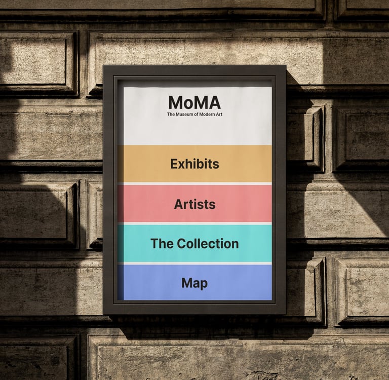 For this project, I redesigned the MoMA (Museum of Modern Art) website in 2 ways : implementing a new navigation bar on the original website & changing the modality to a public screen system.