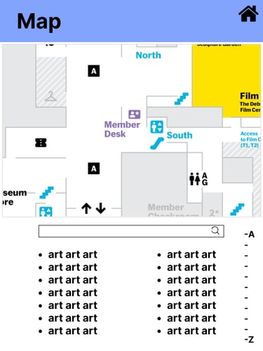 For the redesign I chose to convert the website to a public screen system. These would be screens that users could find throughout the museum and could be used as a map or for more information on the exhibits. Due to the change in modality from the website, a lot of the changes that needed to be made for the website could not be used on the public screen.