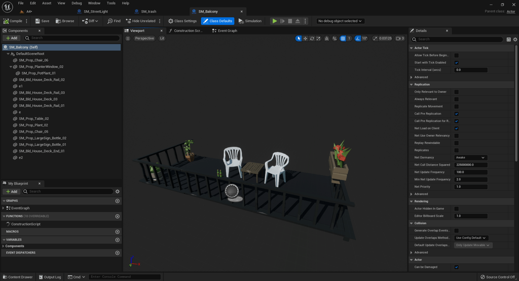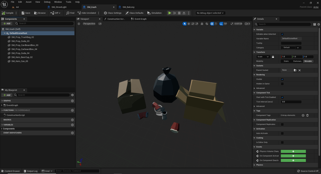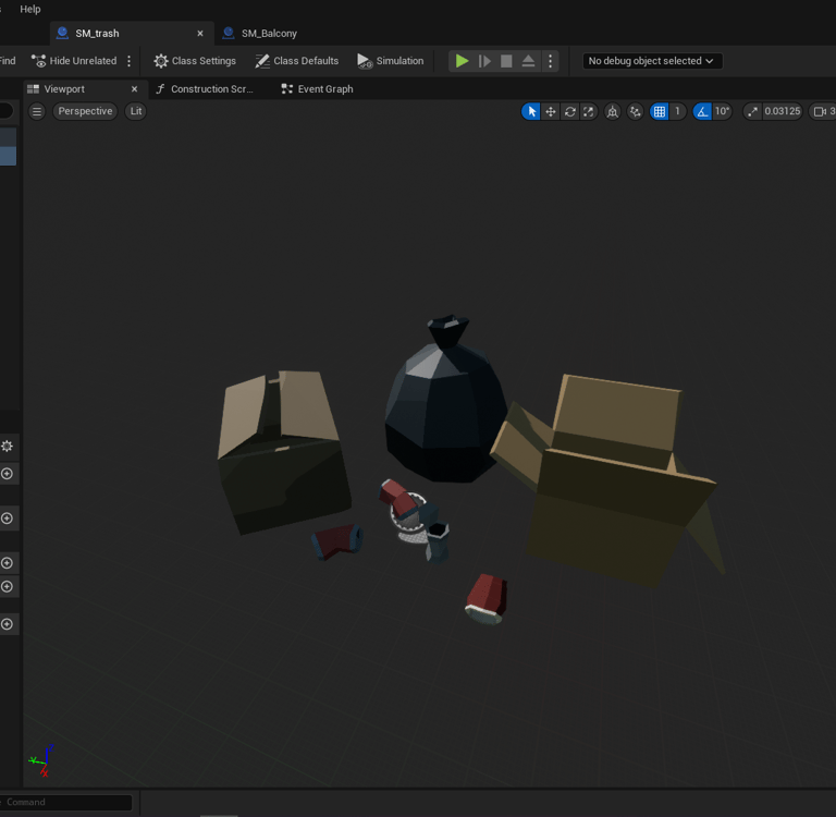 To figure out how I wanted the environment to be organized, I greyboxed with the landscape tool and basic shapes. This gave me a good idea of how the environment would look with foliage and other props. Before adding the textures and final props, i made changes the landscape to add more space for the tents and added the cacti and rocks surrounding the crater to emphasize the desert environment even more.