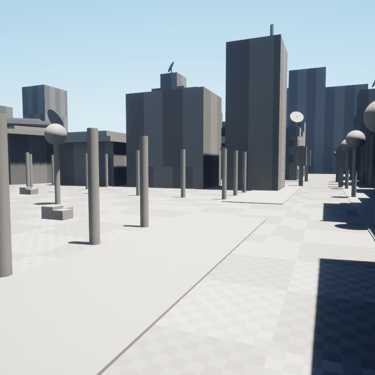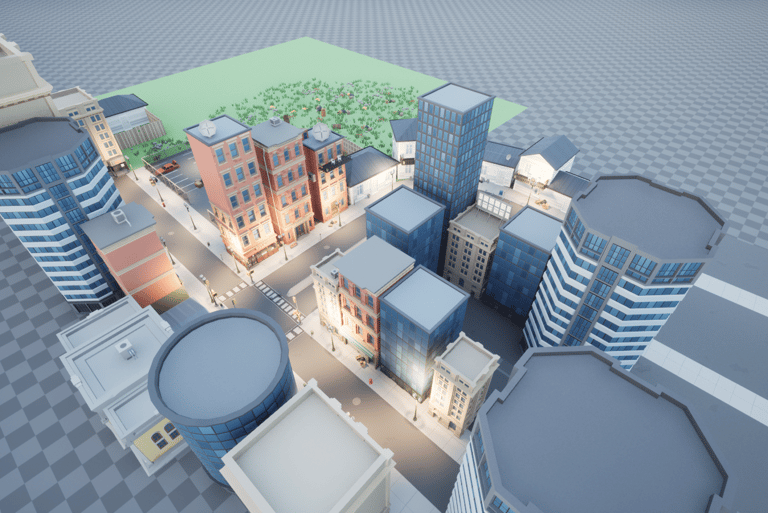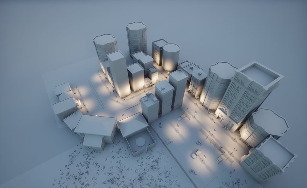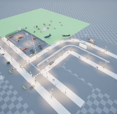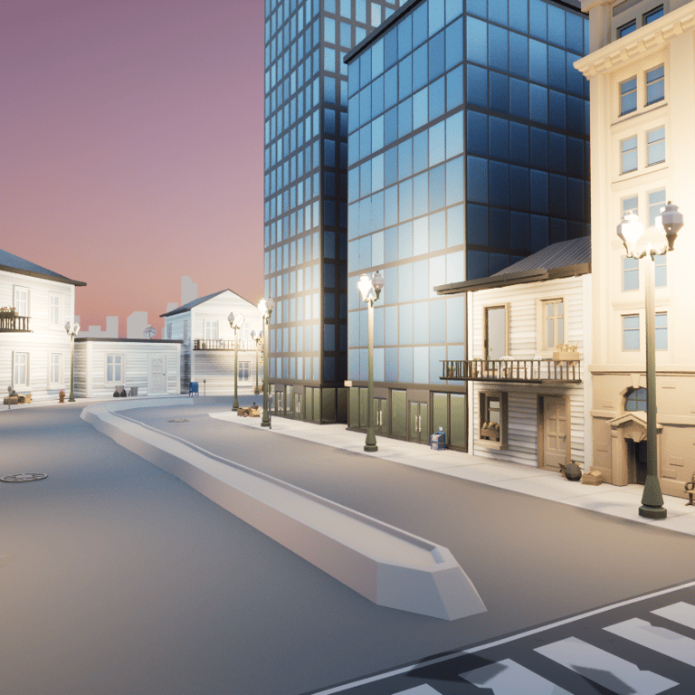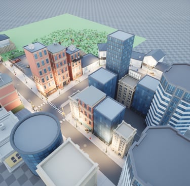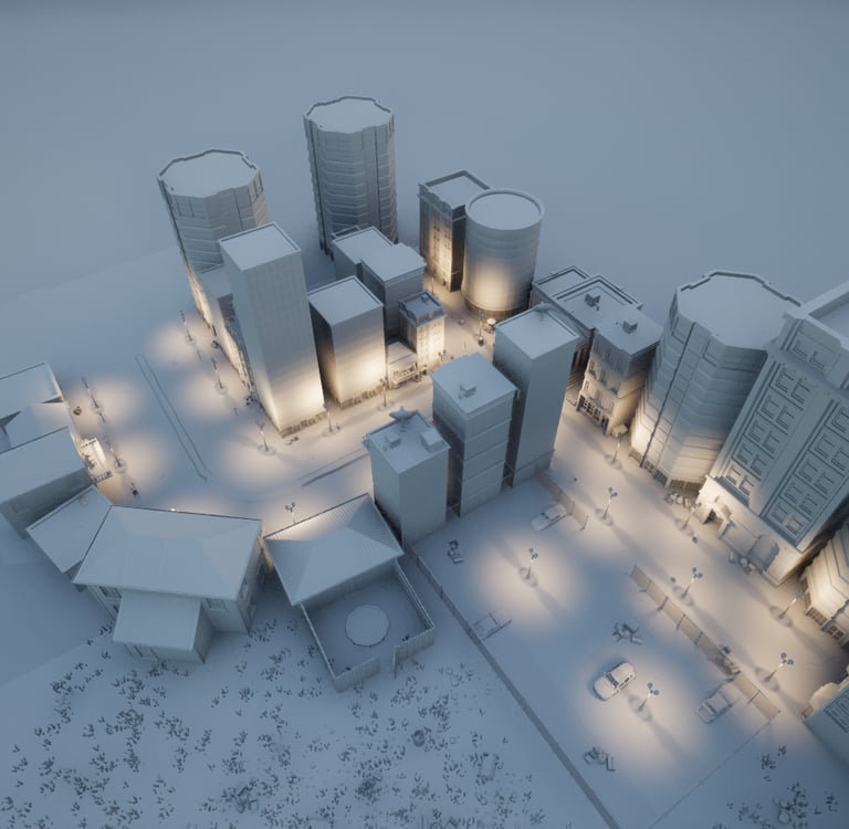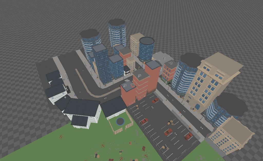 "The city of Suburbia was once a bustling thriving metropolis overflowing with wealth and opportunity. Companies would flock to Suburbia because of the younger population and the city's ideal location. Main street especially was a bustling area with both industry and residential areas side by side. As the city expanded a lot of the houses there became condos with a few houses still standing. One stubborn resident still has their house standing in between the office buildings. They refused to give up the land so it becomes a sort of tourist attraction to visitors because of its stark contrast with the industrial area. After some time, however, the city slowly started becoming less cared for. The decline of new business and lack of city funding caused the city to lose its shine. The backyards and alleys became filled with trash and the city itself fell into a state of disrepair. The city now is a less shiny version of itself, while the main street is still bustling with businesses it has severely decreased and is a shadow of its former self."